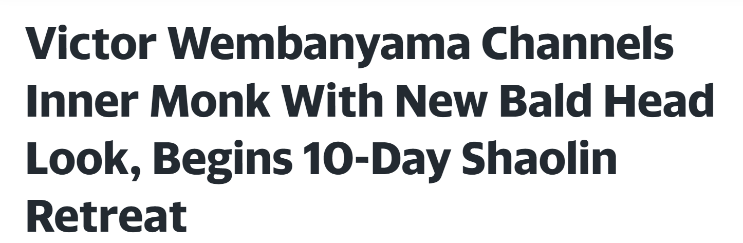 剃光的头、平静的神情,从圣安东尼奥的硬木地板转战神圣的寺院石地,一切都清晰表明:文班亚马正踏上一段与众不同的旅程。