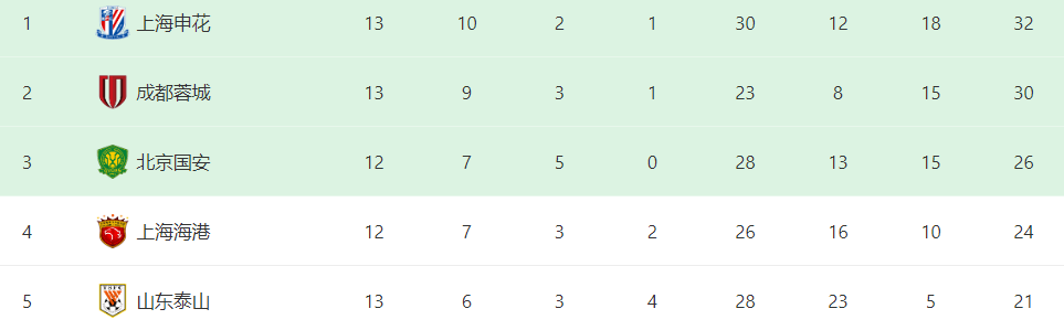 这个赛季,上海申花延续了上个赛季的好状态,前面13轮战罢,他们10胜2平1负,积32分,超出第二名成都蓉城2个积分,领跑中超积分榜。这个赛季如果按照现在这样的状态打下去,上海申花问鼎本赛季中超冠军大有希望。