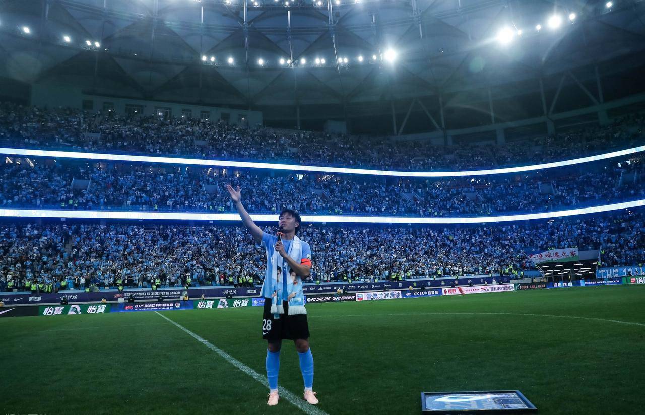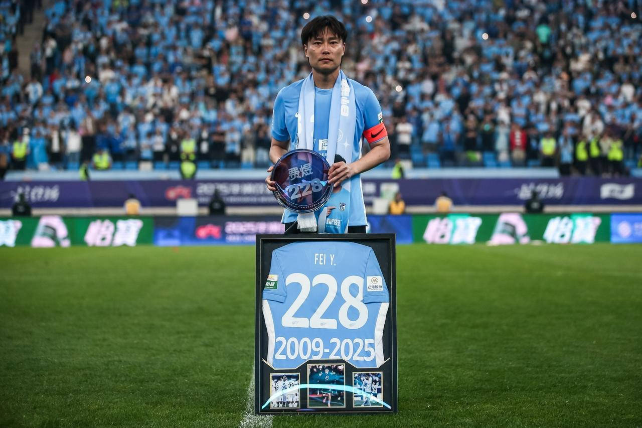 第90分钟,费煜替补出场,戴上了队长袖标,为自己的球员生涯画上了一个圆满的句号。