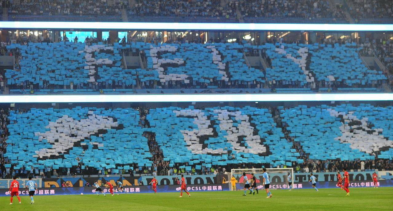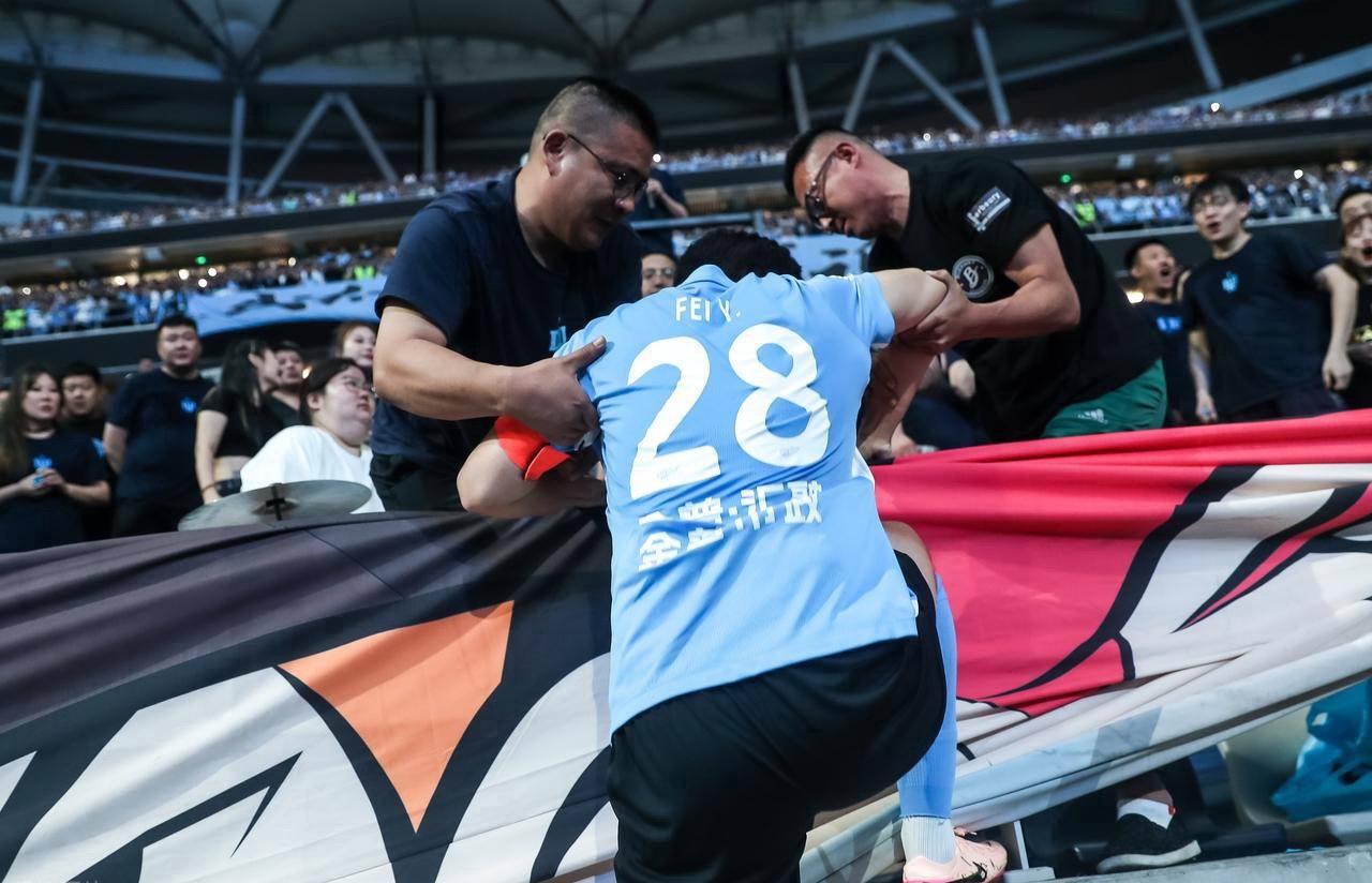 与南看台互动时,费煜敲响了气势如虹球迷会递下来的战鼓!