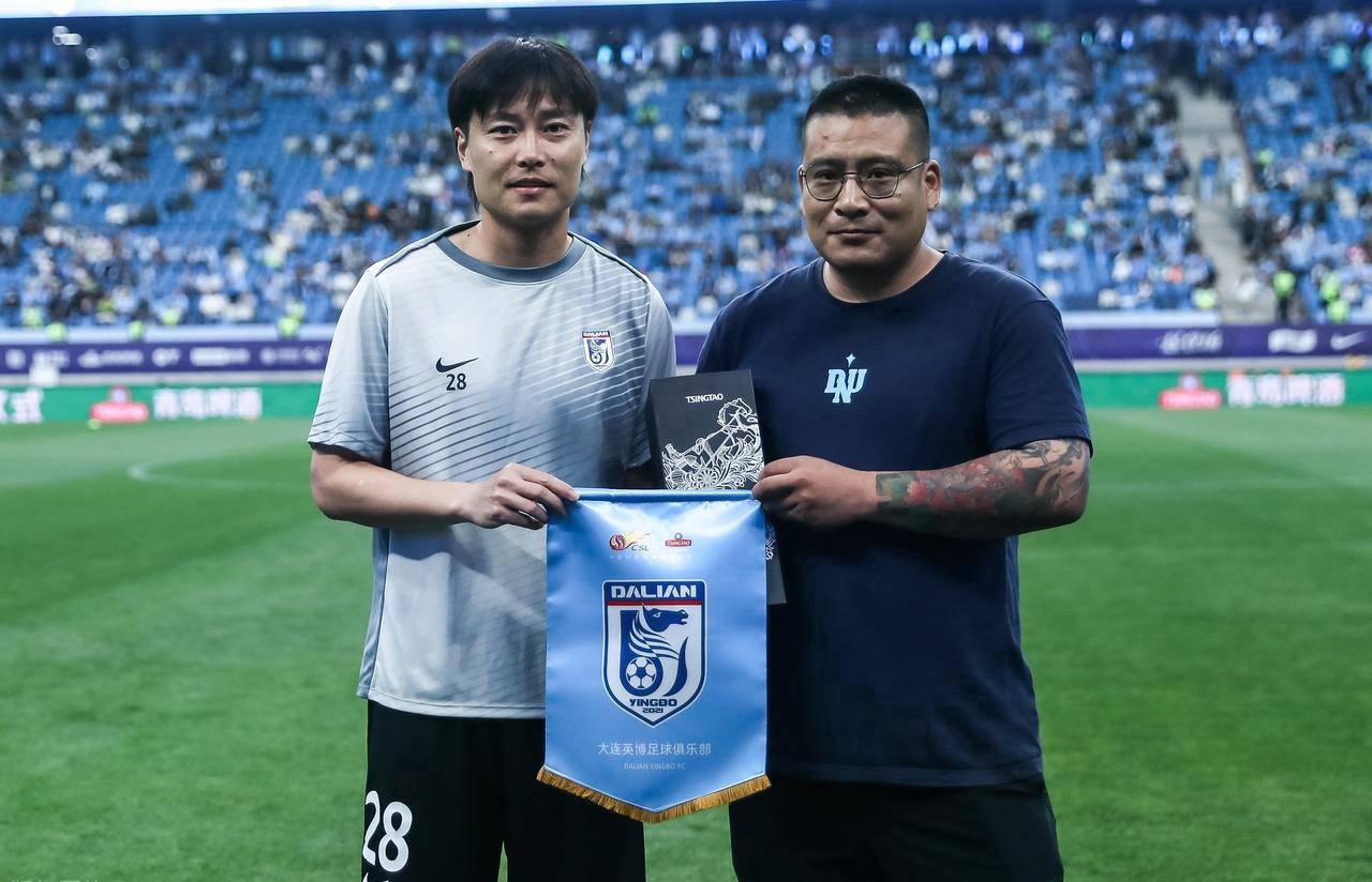 大连英博足球俱乐部为费煜颁发了纪念奖盘和球衣。