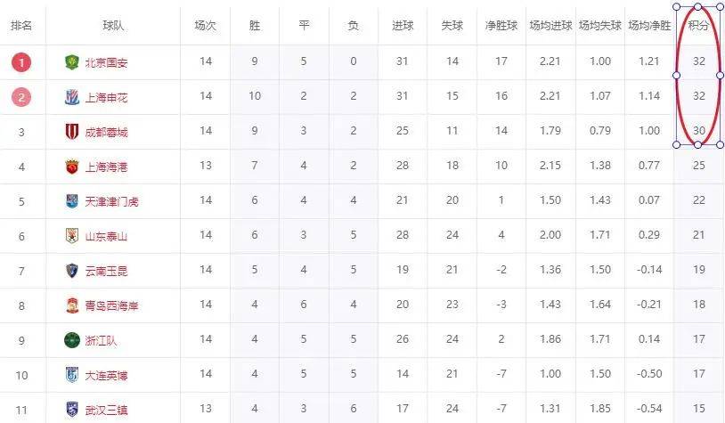 此后双方再无进球,最后北京国安1-0战胜青岛西海岸。这样的话,在实时积分榜上,北京国安32分、上海申花32分、成都蓉城30分,排在前3名,北京国安依靠净胜球优势,反超登顶,而且北京国安本赛季前14轮未输1场,是本赛季中超唯一不败球队。目前中超的争冠形势很明显了,基本上就是北京国安、上海申花、成都蓉城、上海海港4队争冠,山东泰山第6名已经掉队,而接下来上海海港要是补赛输球,也可能掉队。