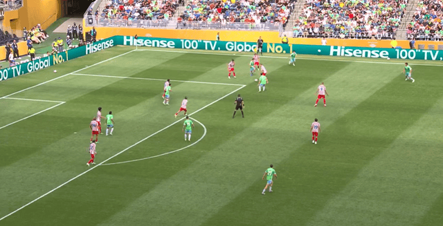 虽然是主场作战,不过西雅图海湾人的实力还是明显略逊一筹,马竞开场很快占据优势。第11分钟,马竞打出精彩配合,西蒙尼倒三角回传,巴里奥斯一脚爆射,皮球击中立柱后弹进球门,马竞早早取得领先,取得梦幻开局。