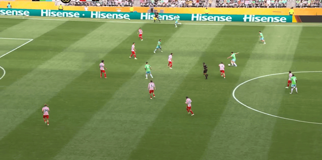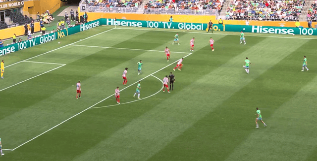 西雅图海湾人随后开始反扑。第50分钟,路斯纳右脚抽射破门,帮助球队扳回一球。不过好景不长,马竞很快再次扩大优势,略伦特大力界外球抛到禁区,西雅图后卫出现失误,巴里奥斯后点扫射破门,上演梅开二度,马竞3-1领先。
