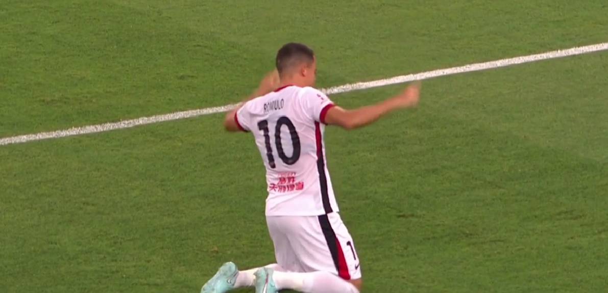 第38分钟,成都蓉城获得了一次前场任意球的机会,前锋罗慕洛主罚的任意球直接穿过王大雷的十指关,帮助蓉城取得1-0的领先。
