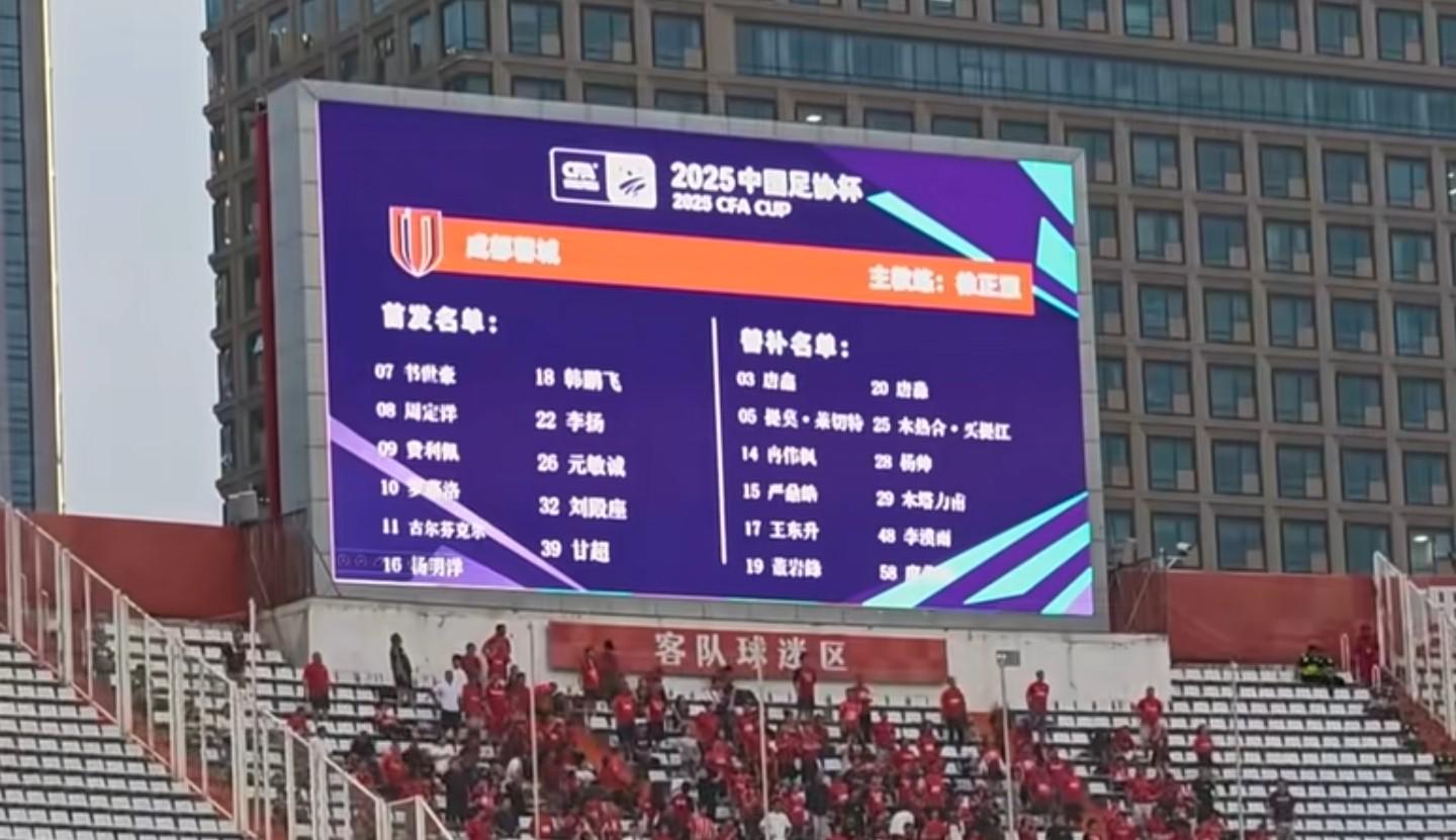 值得一提的是,在山东济南奥体中心体育场的显示屏上,成都蓉城球员韦世豪的名字被打成了“书世豪”。