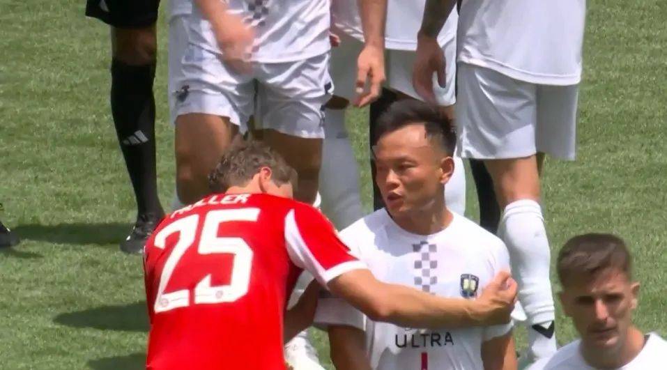 第1轮比赛中,奥克兰城对阵德甲豪门拜仁,双方实力悬殊,奥克兰城身价450万欧,拜仁9亿欧。比赛没有悬念,拜仁全力出击,连进10球,10-0大胜奥克兰城。比赛中,周通替补出场,表现机会不多,而在比赛结束后,拜仁球星穆勒“拖住”周通,左看右看成为比赛花絮(这应该是球员想换球衣,穆勒的球衣却被预定了,穆勒看是不是预定球员的号码)。