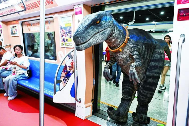 地铁高峰时段 将加开列车缩短行车间隔。跟着“苏超”游常州恐龙主题地铁专列(1号线)同步亮相,恐龙主题地铁专列的每节车厢,都设计了不同的恐龙主题,各种“恐龙”栩栩如生。
