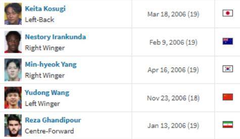 澳大利亚天才伊兰昆达身价400万欧元,去年与拜仁慕尼黑签约。日本天才小杉启太身价400万欧元,效力于瑞典球队尤尔加登。还有韩国天才高中生梁民革身价350万欧元,去年加盟英超热刺!