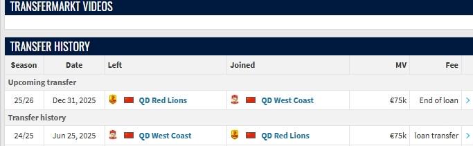 北京时间6月25日,德转更新,青岛西海岸23岁后卫宋博为租借加盟青岛红狮,租借期为半个赛季。