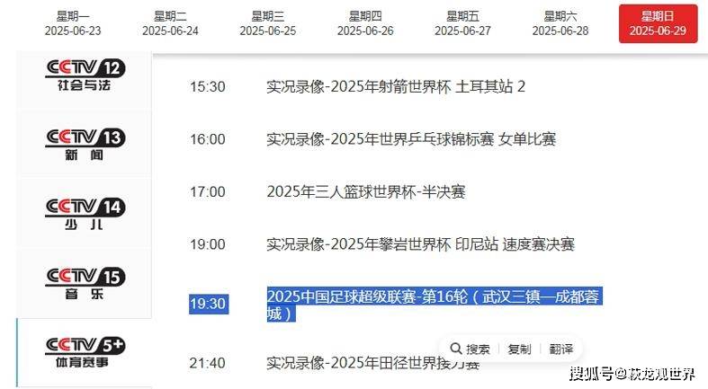 北京时间6月29日19:35,2025赛季中超第16轮,武汉三镇坐镇武汉体育中心体育场迎战成都蓉城,央视体育赛事频道CCTV-5+、成都公共频道进行现场直播!这是央视连续直播武汉三镇的比赛了。球迷也可通过咪咕视频、移动高清、咪世界、央视体育客户端、央视频等网络平台观赛。