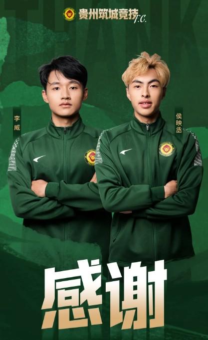 贵州筑城竞技官方:球员李威、侯映丞离开贵州筑城竞技一线队