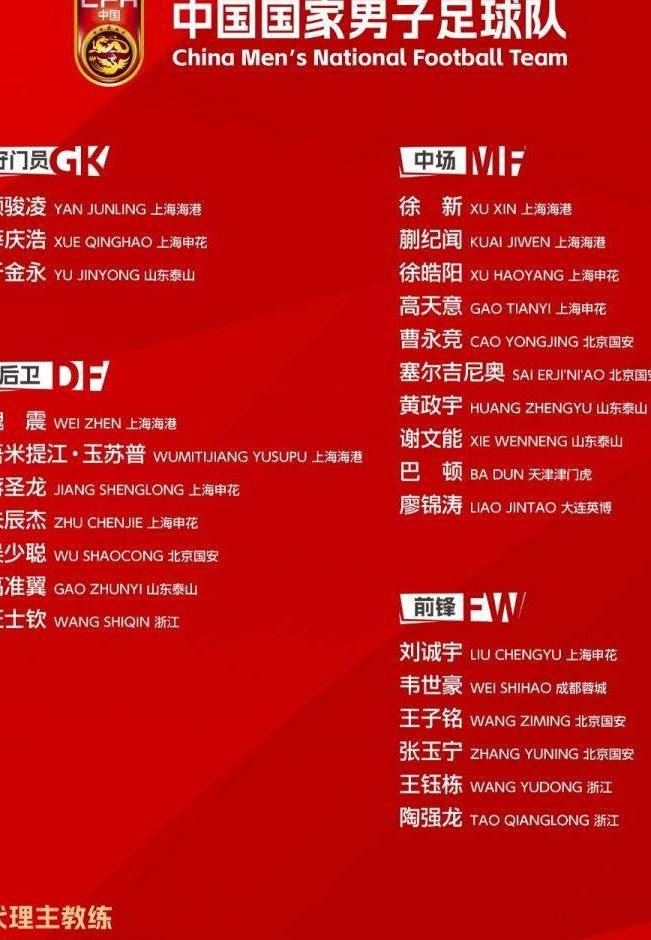 中国香港9名中超球员入选!国足新帅5大核心迎考验,冲冠从击败对手开始