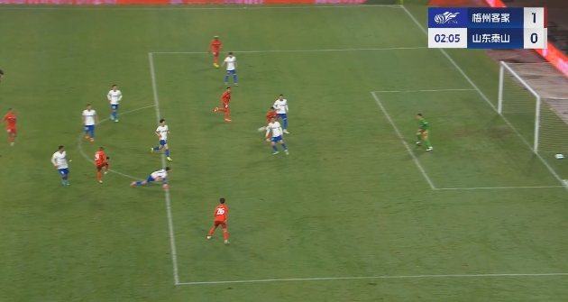 第34分钟,梅州客家再入一球,罗德里格禁区内面对多位泰山球员闪开射门角度,低射破门完成传射,梅州客家3-0领先山东泰山。↓