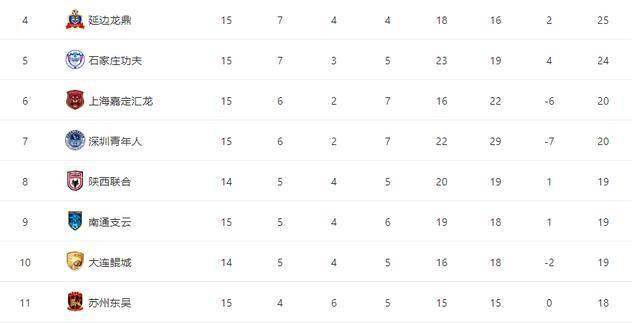 在目前的中甲积分榜上,上海嘉定汇龙以 20 分排名第 6,距离排名第 4 的延边龙鼎有 4 分差距,仍有冲击联赛前列的机会,同时领先身后的大连鲲城 1 分。