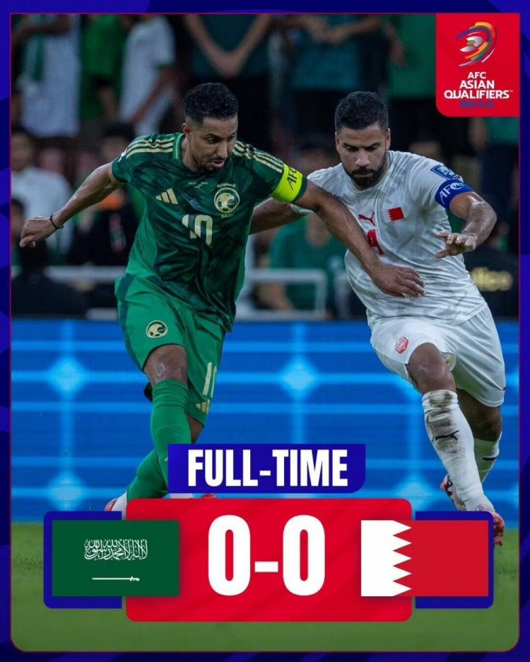 世预赛-沙特0-0巴林两队同积5分分列三四位 巴林四人染黄