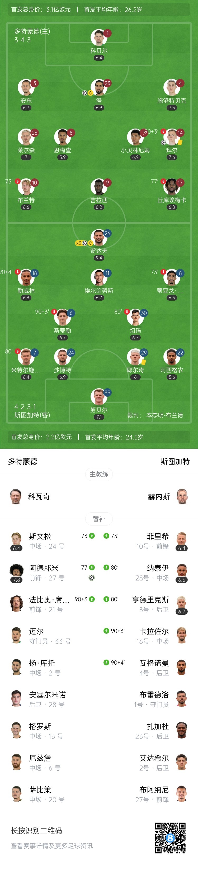 伤停补时3分钟。全场比赛结束,多特3-3斯图加特。