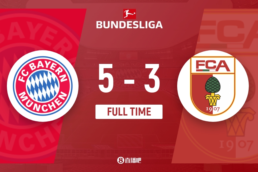 下半场伤停补时3分钟,全场比赛结束,最终拜仁5-3击败奥格斯堡。