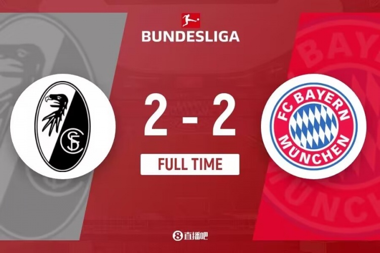 下半场伤停补时4分钟,全场比赛结束,最终拜仁2-2弗赖堡。
