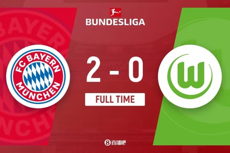 全场比赛结束,拜仁慕尼黑2-0沃尔夫斯堡。