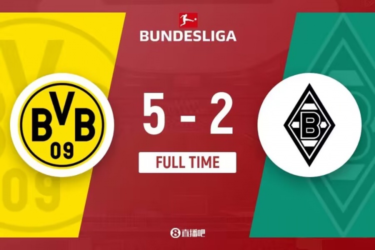 全场比赛结束,多特蒙德5-2门兴。
