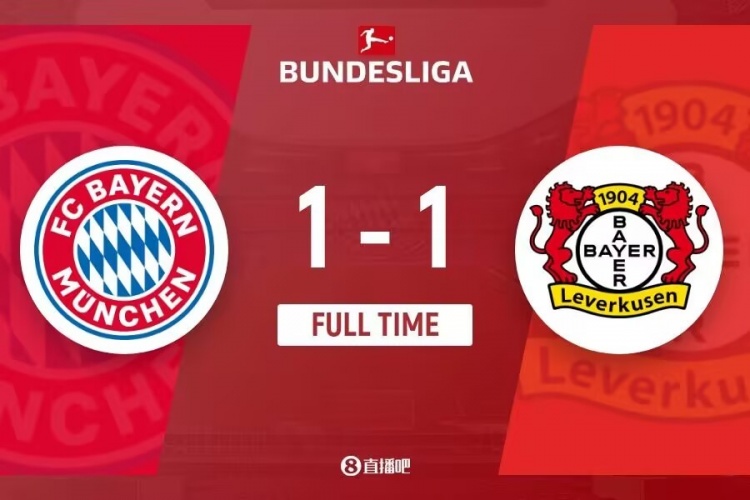 全场比赛结束,最终拜仁1-1勒沃库森。