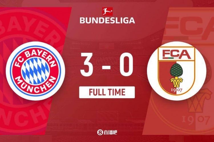 下半场没有伤停补时,最终拜仁3-0奥格斯堡。
