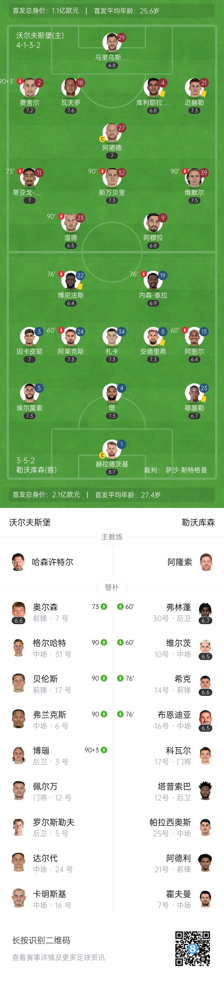 第7分钟,沃尔夫斯堡前场定位球传到禁区中路,库里耶拉基斯头球顶入球门右上角,不过随后VAR介入,越位在先,进球无效!↓
