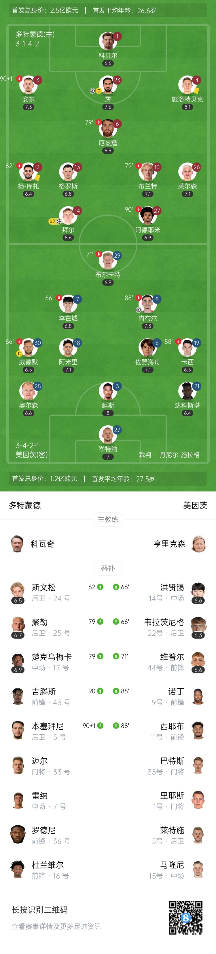 【双方首发及换人信息】