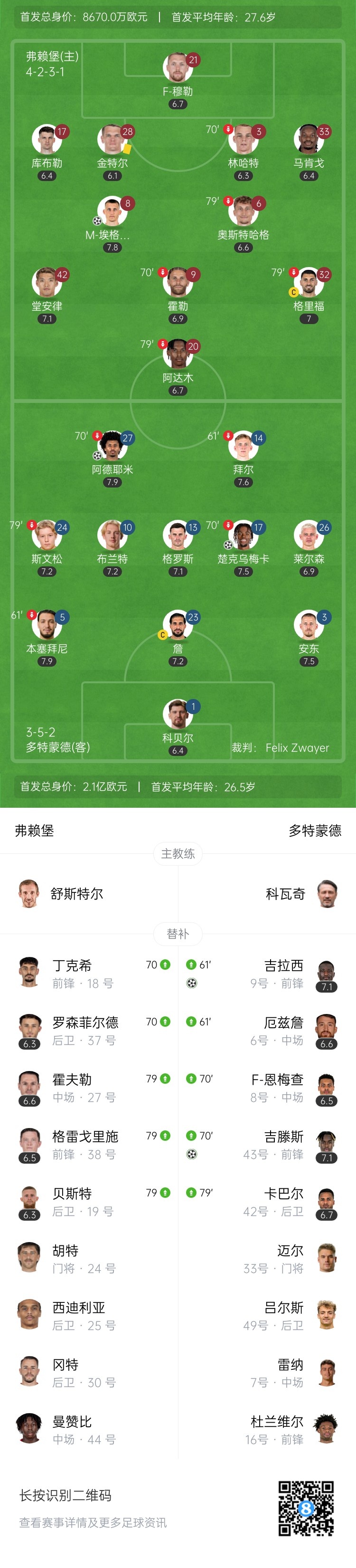 第88分钟,弗赖堡前场传到禁区,埃格施泰因抽射破门!多特蒙德4-1弗赖堡↓