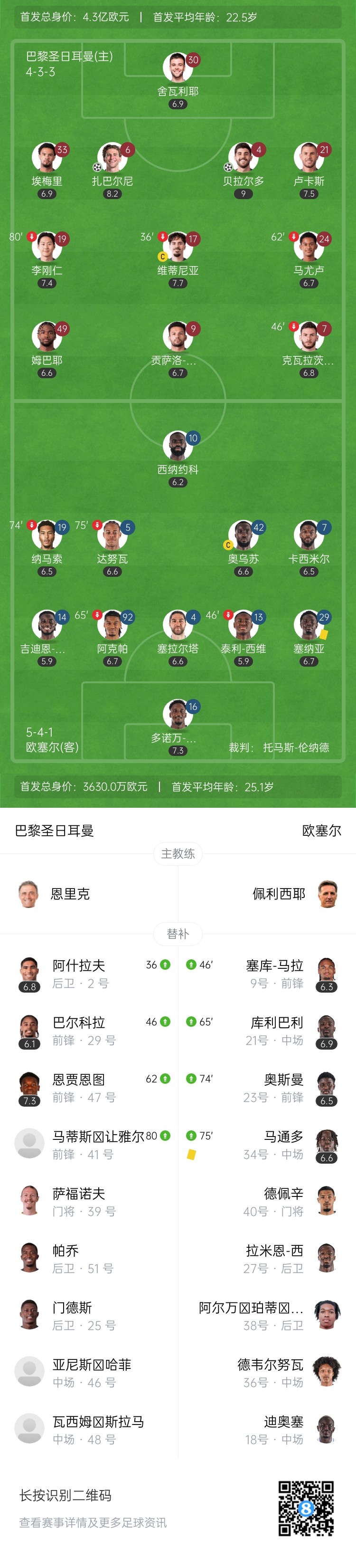 第35分钟,维蒂尼亚早早被替换下场,阿什拉夫出场↓