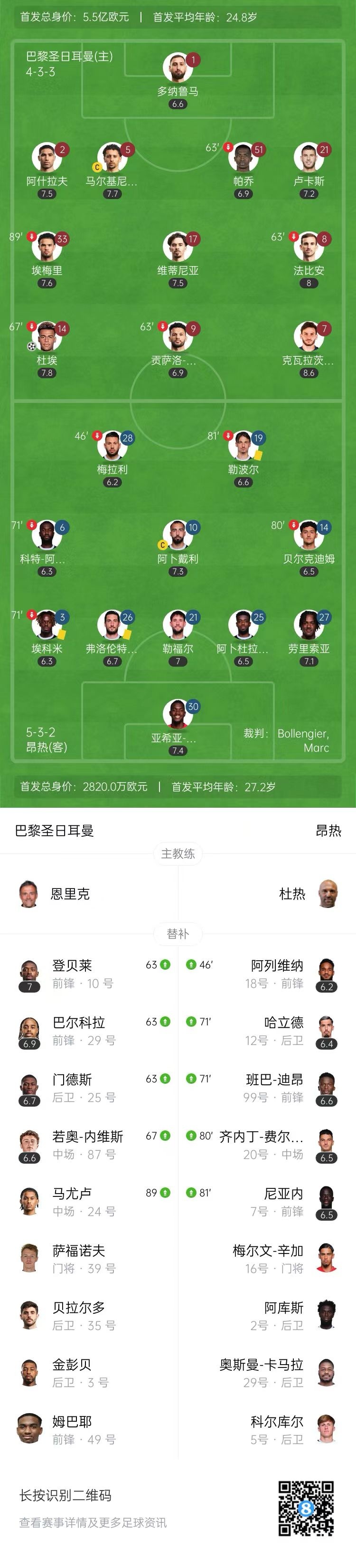 提前6轮夺冠!巴黎1-0昂热锁定法甲4连冠 克瓦拉助攻杜埃制胜
