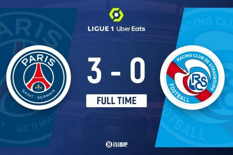 全场比赛结束,巴黎3-0轻取斯特拉斯堡。