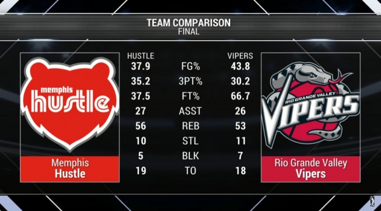 里奥格兰德山谷毒蛇:惠特摩尔28分6板、杰纳森-威廉姆斯18分8板、萨缪尔斯13分6板、梅克12分8板、当特8分5板、诺威尔8分6助3断、辛顿5分6板6助
