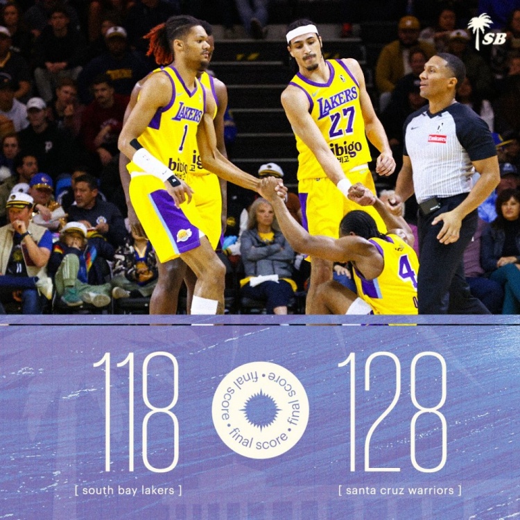11月16日讯 NBA发展联盟迎来一场焦点大战,南湾湖人激战圣克鲁兹勇士,不过万众期待的布朗尼进入到洛杉矶湖人的大名单而没有出战本场比赛。