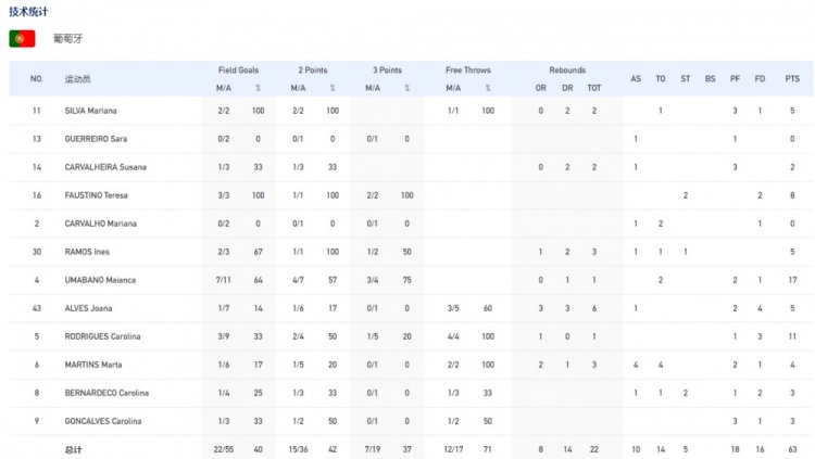 比赛开始,双方开场均很快进入状态,葡萄牙女篮多点开花,中国队在韩旭的带领下里突外投给出回应,两队势均力敌,比分交替领先,葡萄牙女篮准压哨三分命中后以27-24领先3分结束首节。次节上来,中国大学生女篮连投带罚连续拿分,乌玛巴诺飙中三分后葡萄牙女篮进攻陷入停滞,半节的时间仅靠罚球拿到1分,中国队轮番冲击内线频频得手完成14-1的攻击波以48-38反超结束上半场。易边再战,中国队继续保持高强度的防守,对方得分非常困难,但防守端大量的体力投入导致中国大学生女篮同样进攻端效率不高,还出现了4罚1中,后半段韩旭率队及时回暖,唐子婷反击2+1一度将分差拉开到20分以上,三节打完中国队67-49领先18分。末节比赛,葡萄牙女篮连投带罚不断蚕食分差,韩旭披挂上阵后攻防两端建功带队再度将优势扩大到20分以上锁定胜局。最终,中国大学生女篮83-63击败葡萄牙队,取得开门红。
