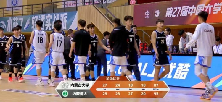 末节比赛,虽然内蒙师大的进攻表现有所下滑,但内蒙古大学这边同样是表现不佳,因此也没有抓住机会迫近比分,孙卓异的两分将分差拉开到十分,最终内蒙师大95-87力克内蒙古大学迎来首胜。