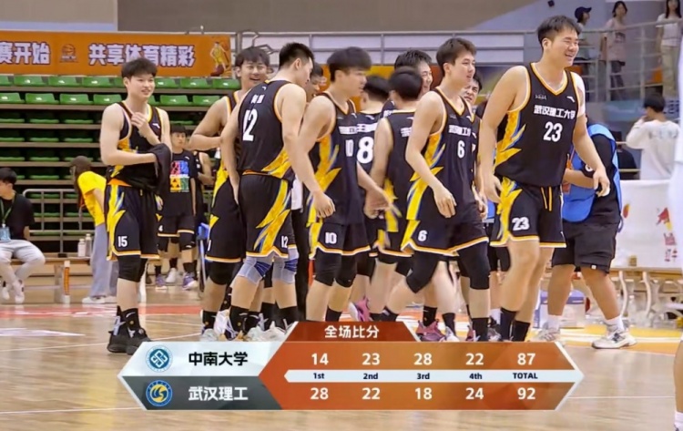 末节决战,石丰铭一攻一传助队紧咬比分,王鹏翼和付典钦接连内线回应,武汉理工持续保持住微弱领先。龚思成三分还能进,黄智三分也能强势回应,付典钦再次突破打进,黄智突破强打再进,武汉理工一波9-0几乎杀死比赛,龚思成三分再进但为时已晚,最终武汉理工92-87力克中南大学。