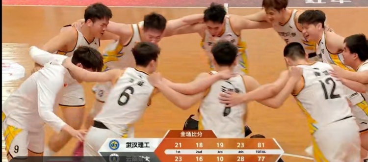 第四节,王鹏翼打成2+1帮助球队保持优势,武汉理工一度将分差拉开到16分,云南财大没有放弃,加强防守利用反击轰出20-6的攻击波一举将分差缩小到只剩2分,黄智两罚全中稳住局势,云南财大苦苦追赶无果。最终,武汉理工81-77险胜云南财大,拿到最后一张全国赛入场券。