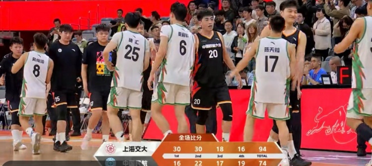上海交大:顿家威17分4板,吴泽昊16分5助,陈天灿11分5板8助,刘冠男14分8板,胡汇11分
