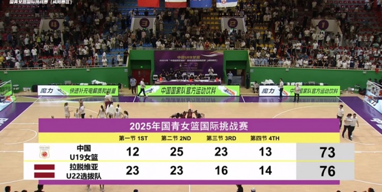 首节之争中国女篮U19开局和对手一路拉锯势均力敌,不过最后接近5分钟的时间里中国女篮U19仅依靠罚球拿到2分遭遇莫名得分荒,而拉脱维亚抓住机会送出一波14-2的攻势一举拉开11分的领先。次节开局中国女篮U19逐渐找到感觉破荒拿分,但拉脱维亚这边手感火热一度拉开22分的优势;好在后半段中国女篮U19攻防两端全面回暖,李雨汧关键三分破荒带队轰出17-4的攻势一举追至9分结束上半场。 休息归来中国女篮U19越战越勇,李雨汧和冉珂嘉相继拿分开局一波15-5的攻势直接反超比分。这之后双方开启拉锯战多次战成平手势均力敌,不过最后读秒阶段中国女篮U19先是丢了关键篮板被对手补篮重新取得领先,随后赵琳的进攻犯规导致败局。最终,中国女篮U19以73-76憾负拉脱维亚U22选拔队惨遭双杀。
