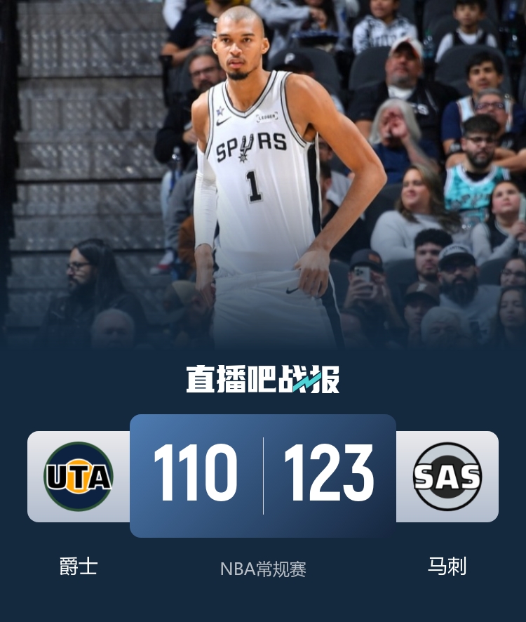 🏀马刺7人上双送爵士4连败 文班亚马33+10&赛季新高7记三分