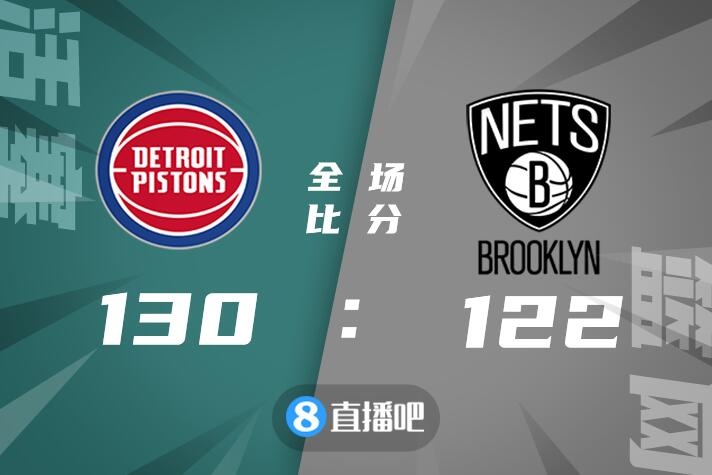 比赛上来,两队就陷入到拉锯战,场上比分交替领先,次节双方依旧是打得难分难解并且保持着极高的命中率,分差始终无法被拉开,半场结束时篮网仅领先1分;下半场活塞彻底打开并占据场上主动,单节就轰下43分的他们建立起两位数的领先优势,末节篮网也没有获得太多机会一直与对手保持拉锯,分差始终保持在十分左右,最终活塞130-122力克篮网结束了自己的四连败。