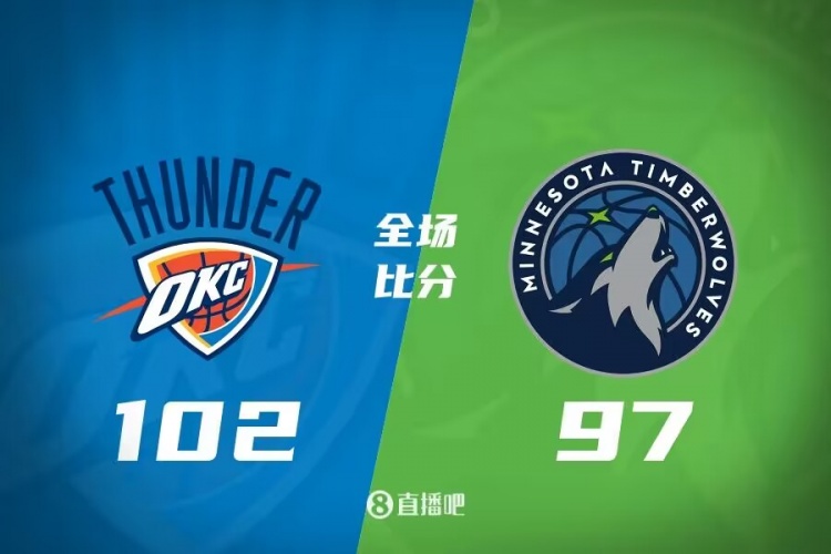 比赛开始,雷霆率先发力,内外开花打出21-5的强势开局,森林狼及时回暖连中4记三分缩小分差,此后双方陷入缠斗,比分交替领先,雷霆一波11-3以57-54领先结束上半场。易边再战,雷霆命中率骤降,森林狼打出7-0的攻击波迅速反超,爱德华兹强攻得手帮助球队一度获得两位数优势,末节森林狼突然哑火,半节仅拿到5分,雷霆趁势打出11-2扳平比分。双方争夺陷入白热化,关键时刻亚历山大飙中三分,康利空位三分不中,爱德华兹造成三分犯规本有追平的机会但三罚不中,雷霆102-97惊险取胜。