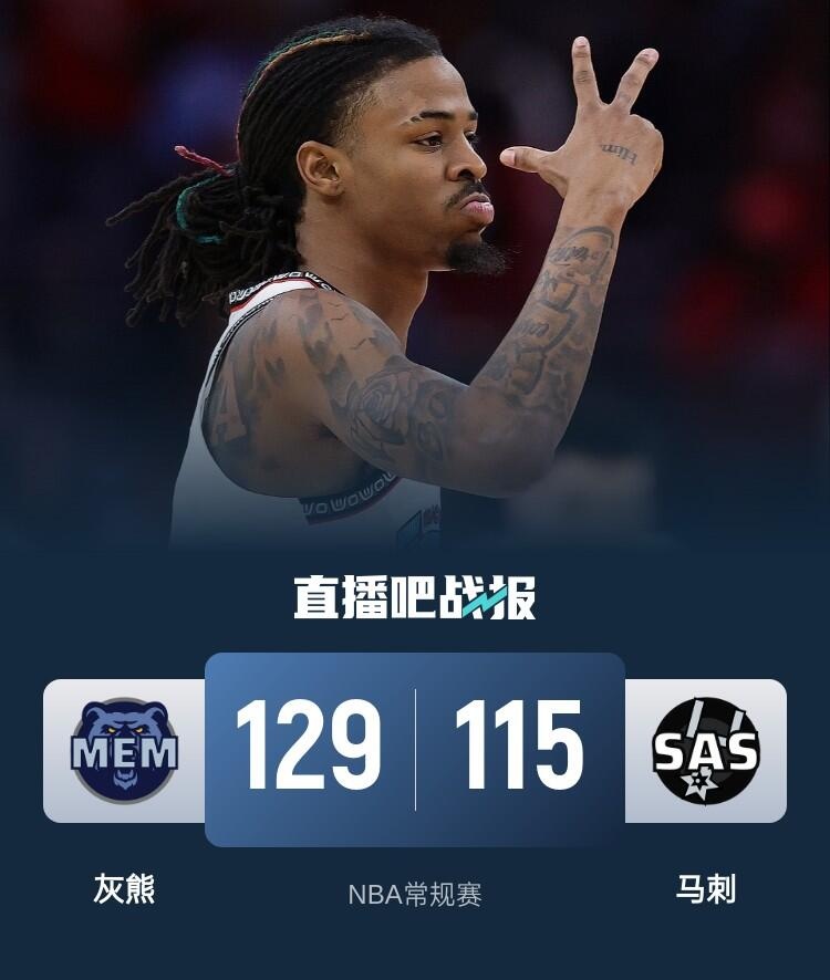 🏀莫兰特21+12 阿尔达马20+10 文班13+12+8帽 灰熊击败马刺