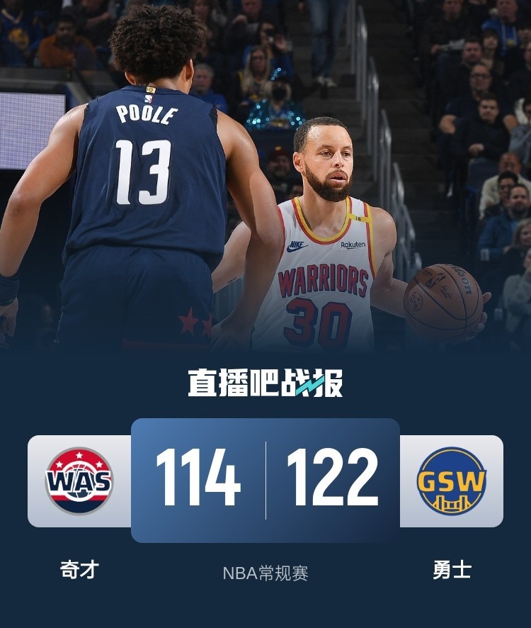 🏀库里26分再添新伤 维金斯31+11 普尔38分 勇士送奇才9连败