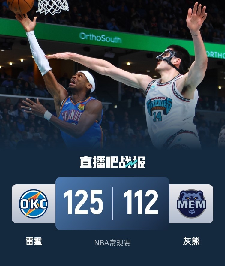 🏀亚历山大32+8 杰伦威25+6+6 莫兰特19中6 雷霆轻取灰熊