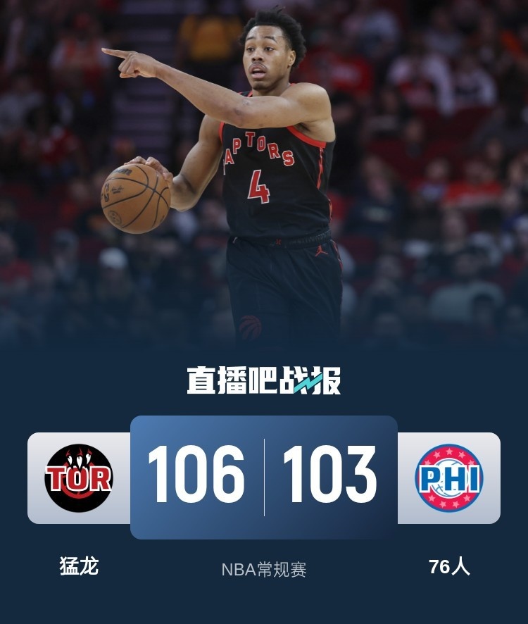 🏀巴恩斯33+10 恩比德致命失误 马克西9中1 猛龙送76人4连败