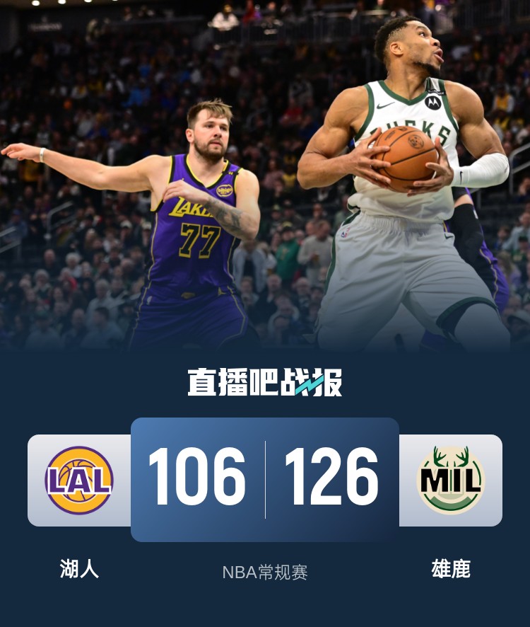 🏀东契奇空砍45+11 字母哥&利拉德合砍46分 湖人负雄鹿吞3连败