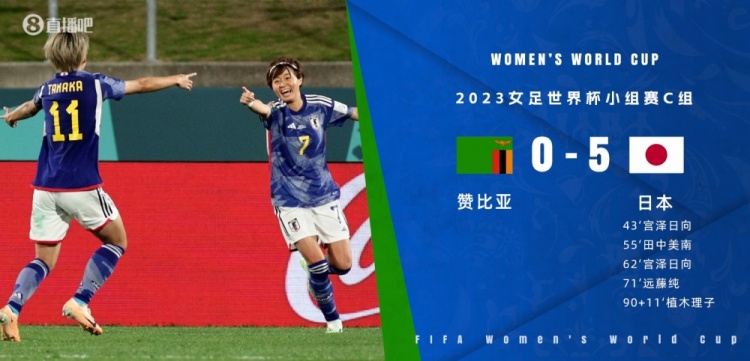女足世界杯-日本5-0赞比亚取开门红 宫泽日向双响赞比亚全场0射门